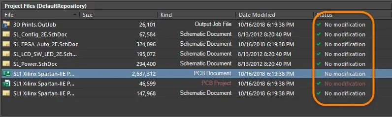 Add Project Folder to Version Control - use this command to add the selected project to your version control repository/database. This command is available only when the project has not already (or previously) been added to version control. This process will create a version-controlled copy of the project within the selected target design repository. The VCS will configure the project files and settings so that whenever you work on this project in the future, Altium Designer will recognize that it is under source control and correctly reflect the status of the documents – such as when a document has been modified or added (but not yet committed) to the VCS.