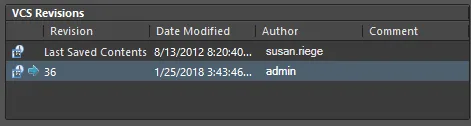 A history for the selected library document will also be shown when that library is a symbol or footprint library referenced by a database, which in turn, is linked to an SVN Database Library file.